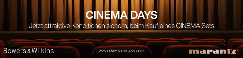 Aus diesem Grund möchten wir Ihnen mit unseren CINEMA DAYS die Möglichkeit bieten ein Heimkino zu attraktiven Konditionen erwerben zu können. Da wir uns bewusst sind, dass jede Wohnumgebung andere Möglichkeiten und Voraussetzungen bietet und somit nicht alle ein 7.1.4 Kino unterbringen können und wollen, sind unsere CINEMA DAYS auch bereits bei einem 2.1 oder 3.0 CINEMA möglich. Gerne beraten wir Sie bei Ihren Heimkinoträumen und realisieren mit Ihnen zusammen Ihr Traumkino.