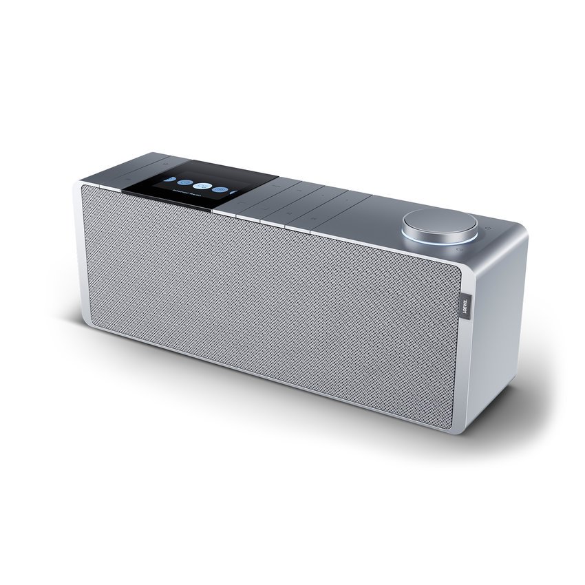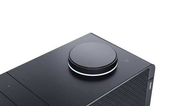 Das gebürstete Aluminium-Gehäuse mit profilierten Tasten, beleuchtetem Drehregler und die schlanke Silhouette sorgen für einen modernen Look. Loewe klang s benötigt kaum Platz und fügt sich als minimalistische Lösung ideal in den Wohnraum ein.