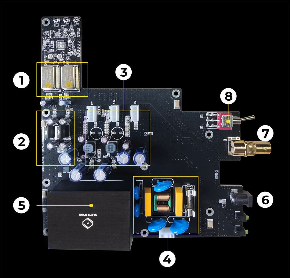 - Klassenführendes internes Schaltnetzteilmodul in Radarqualität - eine Technologie, die ausschließlich für geräuschempfindliche akustische Geräte verwendet wird