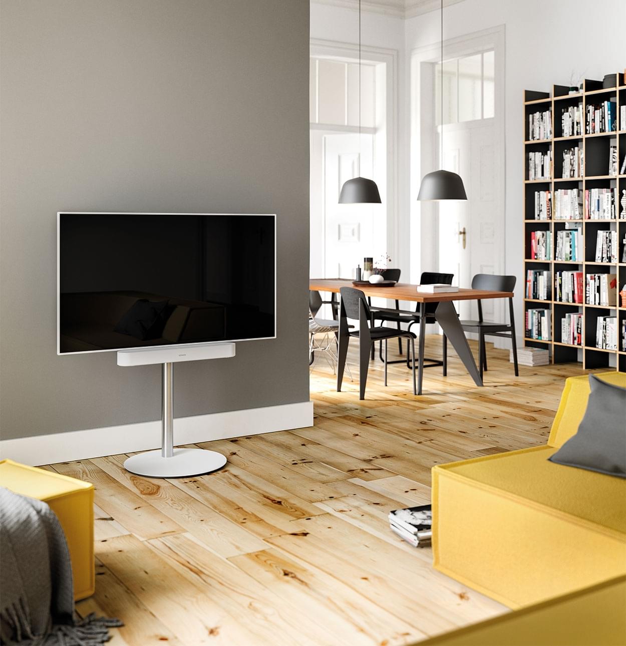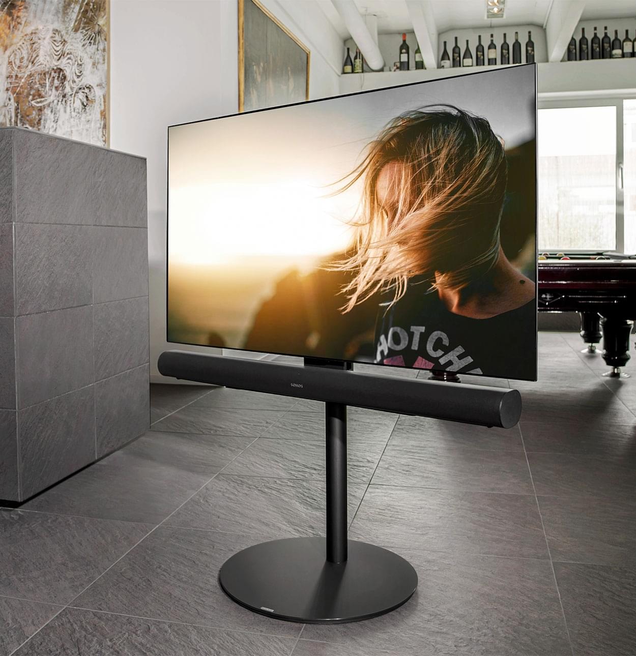 Mit dem TV-Stand Circle VX wird Fernsehen jetzt noch flexibler. Der TV ist daran nicht nur drehbar, sondern kann auch flexibel in der Höhe montiert werden. Selbst der Ton kann seine Richtung ändern, denn die Soundbarhalterung dreht sich mit dem TV mit. Die Soundbar wird unter dem Fernseher direkt am TV-Stand platziert. Damit macht die Soundbar Ihrer Wahl nicht nur eine gute Figur, sondern klingt auch unerhört gut. Optimaler Sound aus jedem Winkel.