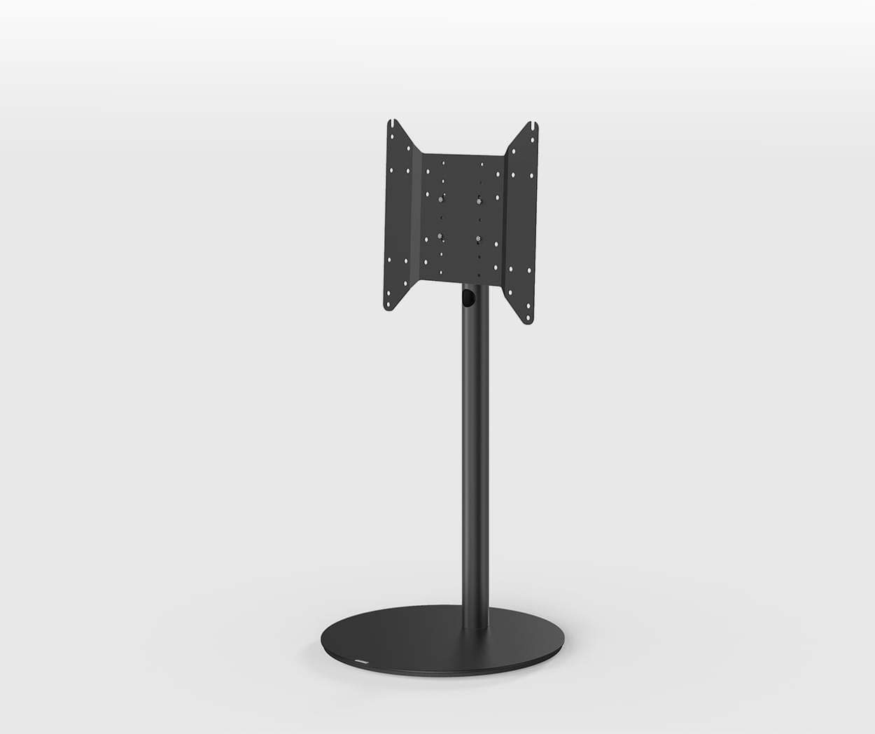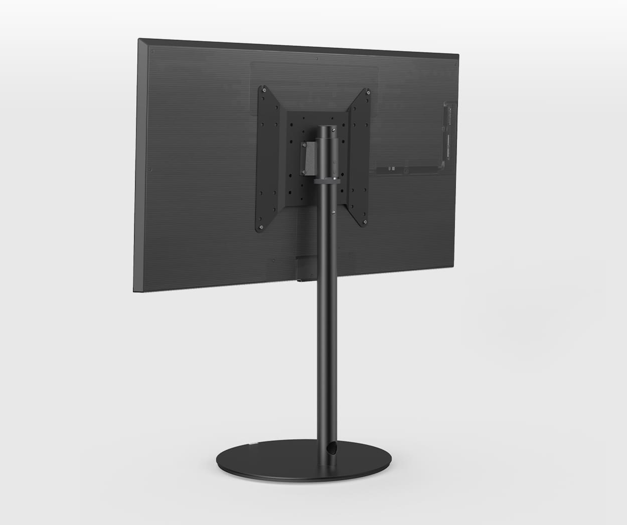 Circle VX ist individuell. Die TV-Säule gibt es in fein geschliffenem Aluminium oder aus eloxiertem Aluminium in seidenmattem Schwarz. Die runde Sockelplatte aus Stahl kommt mit einer lackierten Glasauflage, mit über 2.000 Farben zur Wahl.